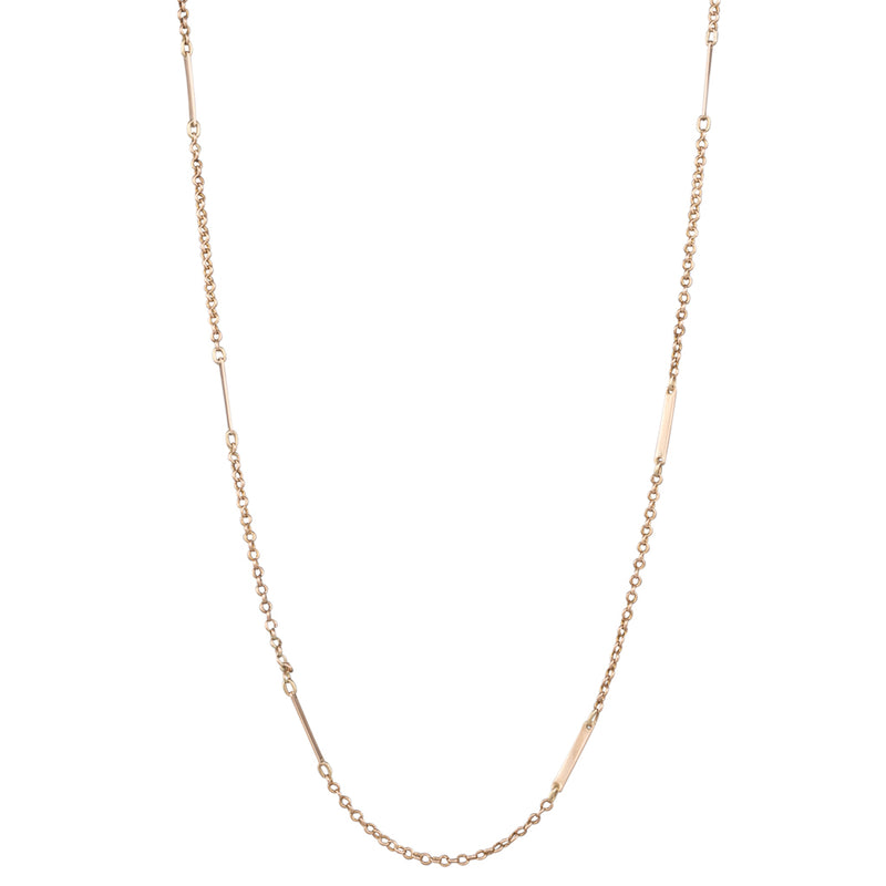 Antique 9ct and 10ct rose gold twist link chain with eight flat solid links at intervals throughout the length of the chain, finished with a handmade clasp.