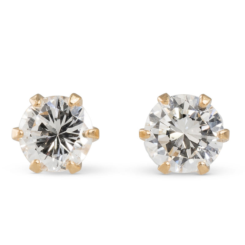 Pair of 18ct yellow gold stud earrings, each six claw set with a 0.20ct round brilliant cut diamond, on posts with yellow gold and silicone butterflies.