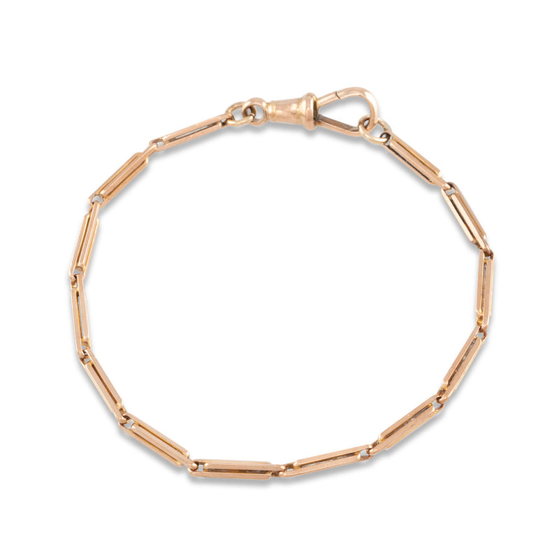 9ct rose gold fetter link bracelet fastening with a swivel clasp. Length: 19cm Weight: 6.1 grams Age: C1900