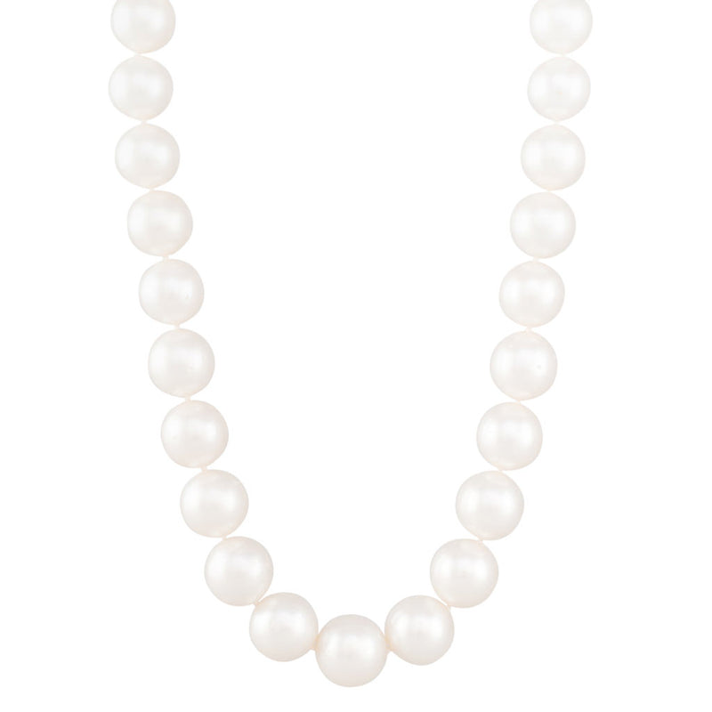 A strand of round white South Sea pearls measuring 15 - 17mm with a medium lustre and some small natural surface marks. 27 pearls threaded to a 9ct white gold matte finish ball clasp.