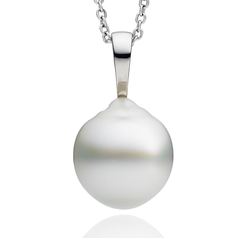 A baroque shaped white South Sea pearl enhancer in 18ct white gold featuring a pearl measuring 16mm with a good lustre and some natural baroque surface markings.