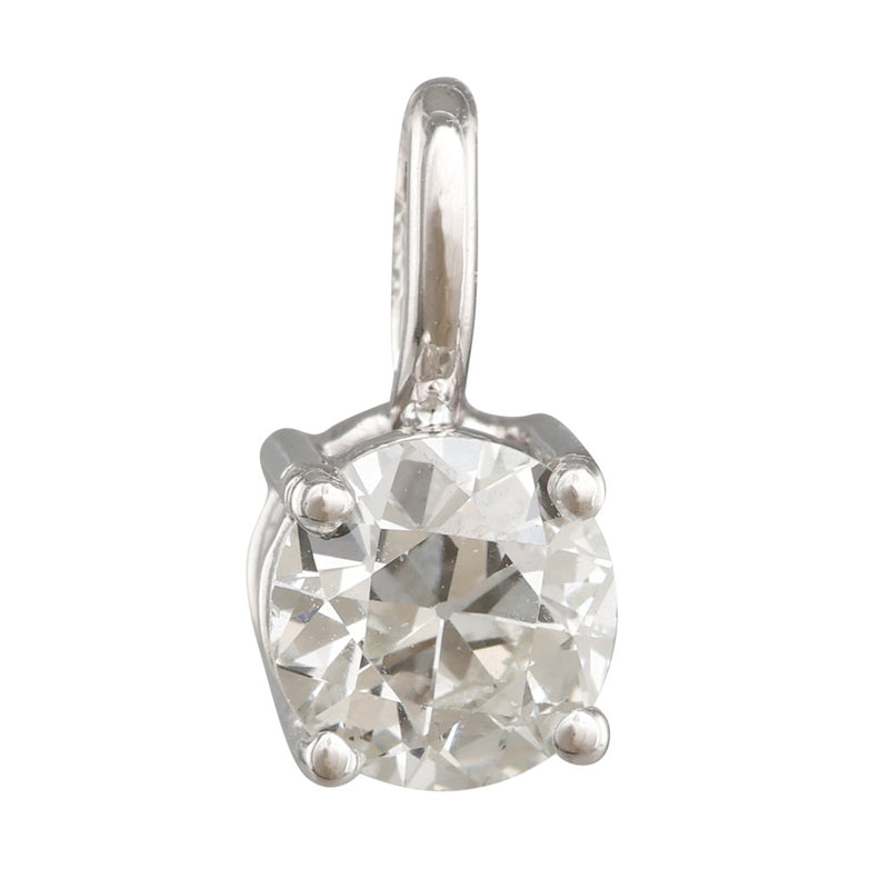 18ct white gold pendant set in four claws with a 0.51ct GIA eReport certified old cut diamond graded as colour J, clarity VS2 in a double railed gallery below a fixed polished bail.