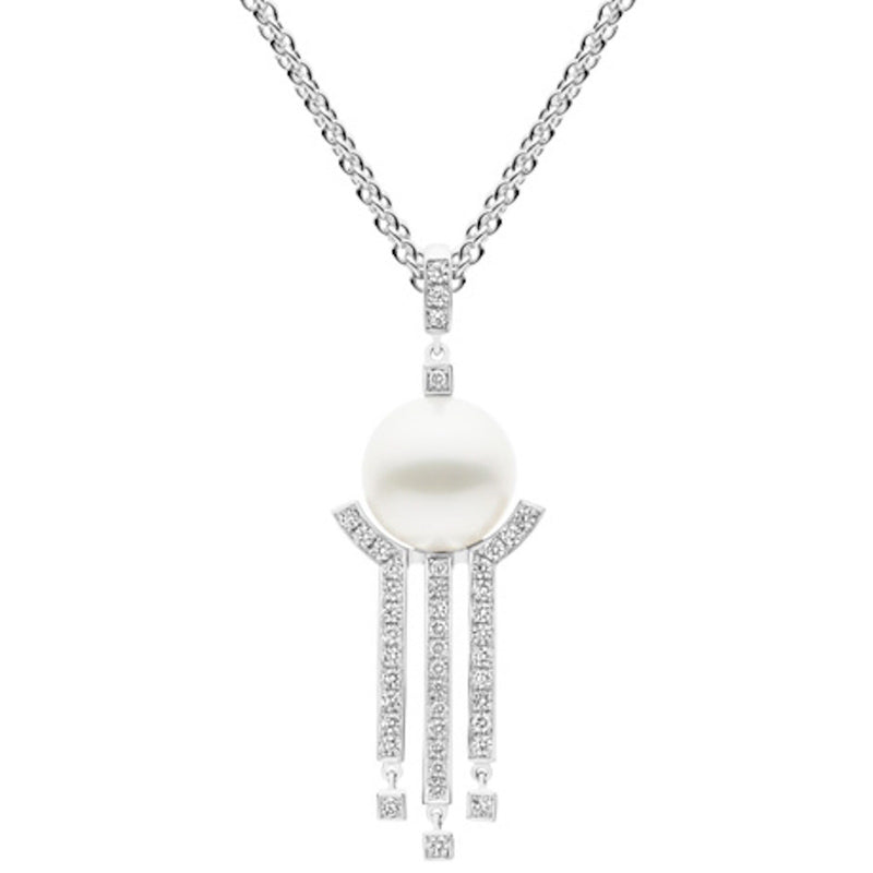 A Kailis 18ct white gold 'Metropolis' pendant, featuring a 13-14mm round Australian south sea pearl, Brand 1. Pave set with 0.74cts (G/VS) round brilliant cut diamonds.
